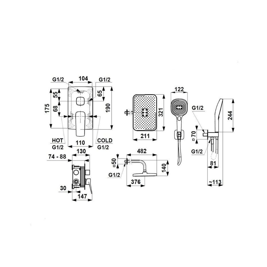 Душова система з термостатичним змішувачем прихованої системи монтажу Armaform